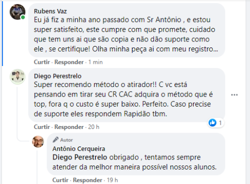 Mais de 8 mil clientes já aprovaram o Método O Atirador e realizaram seus pedidos de CR junto ao Exército Brasileiro sem complicação e sem gastar com despachantes.
